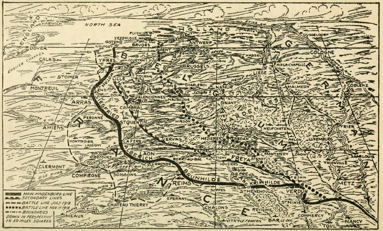 The Allies' plans had now made such favorable progress that a German retreat on a large scale was anticipated. The appointment (p. 023) of General Von Boehm to the command of the German army group in the center of the present battle front strengthened this belief. For this officer was known as a "retreat specialist" who had won a deserved reputation in the art of concealing the movements of great masses of troops. It was he who had concentrated a great army and in absolute secrecy in the forests of the Laon region where he launched the surprise attack over the Chemin-des-Dames. To Von Boehm also belonged the credit of extricating the battered armies of the Crown Prince from the Aisne-Marne salient after Foch's mighty blow of July 18, 1918. Von Boehm's appearance on the Somme-Oise front was almost proof that a great German retirement was soon to begin.