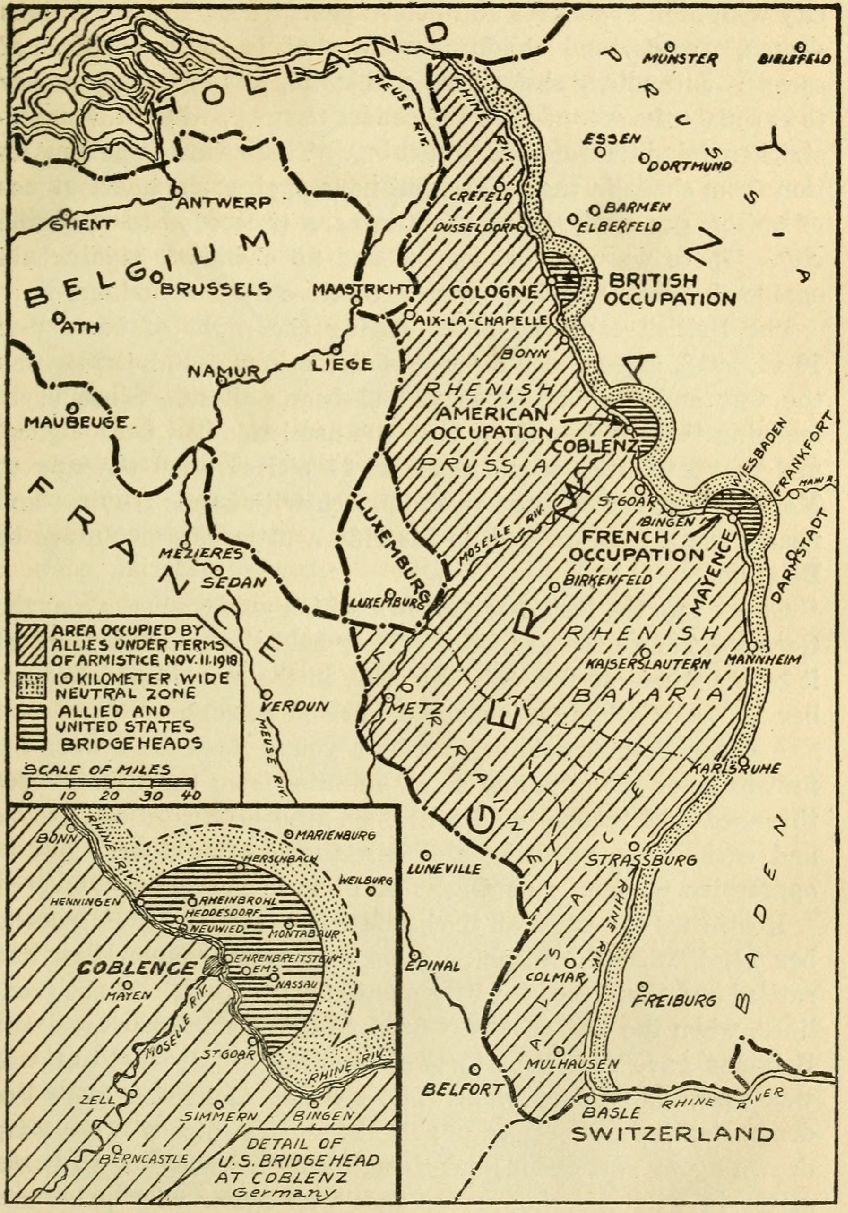 The front insert "The Rhine Valley, Showing Neutral Zones and Bridgeheads" is missing in this file, it will be added when found.