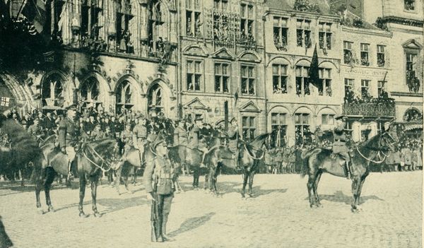 A joyous spirit pervaded the ranks of the Allies as they moved victoriously forward, their cavalry rounding up villages, while tanks and armored cars overran the country clearing a way for the advance of the troops, or destroying the enemy transports. The performance of one tank is especially worthy of record, since it shot up a German corps headquarters.