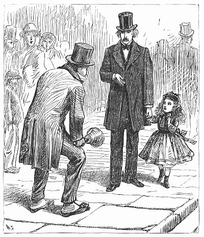 Now we turn the corner. Here are hacks with two horses, and stage-coaches with four, thundering to meet each other, and trucks and carts moving at a slower pace, being heavily laden with barrels from the wharves; and here are rattling gigs, which perhaps will be smashed to pieces before our eyes. Hitherward, also, comes a man trundling a wheelbarrow along the pavement. Is not little Annie afraid of such a tumult? No: she does not even shrink closer to my side, but passes on with fearless confidence,—a happy child amidst a great throng of grown people, who pay the same reverence to her infancy that they would to extreme old age. Nobody jostles her; all turn aside to make way for little Annie; and, what is most singular, she appears conscious of her claim to such respect. Now her eyes brighten with pleasure! A street musician has seated himself on the steps of yonder church, and pours forth his strains to the busy town, a melody that has gone astray among the tramp of footsteps, the buzz of voices, and the war of passing wheels. Who heeds the poor organ-grinder? None but myself and little Annie, whose feet begin to move in unison with the lively tune, as if she were loath that music should be wasted without a dance. But where would Annie find a partner? Some have the gout in their toes, or the rheumatism in their joints; some are stiff with age; some feeble with disease; some are so lean[15] that their bones would rattle, and others of such ponderous size that their agility would crack the flagstones; but many, many have leaden feet, because their hearts are far heavier than lead. It is a sad thought that I have chanced upon. What a company of dancers should we be? For I, too, am a gentleman of sober footsteps, and therefore, little Annie, let us walk sedately on.