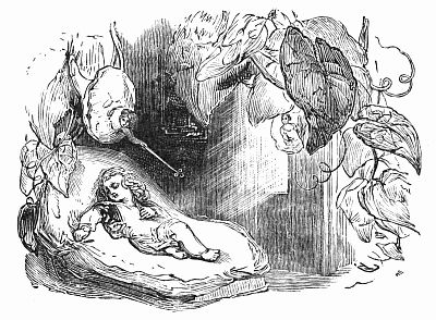 Hush! Again a forest, and somebody up in a tree,—not Robin Hood, not Valentine, not the Yellow Dwarf,—I have passed him and all Mother Bunch's wonders without mention,—but an Eastern king with a glittering scymitar and turban. It is the setting-in of the bright Arabian Nights.