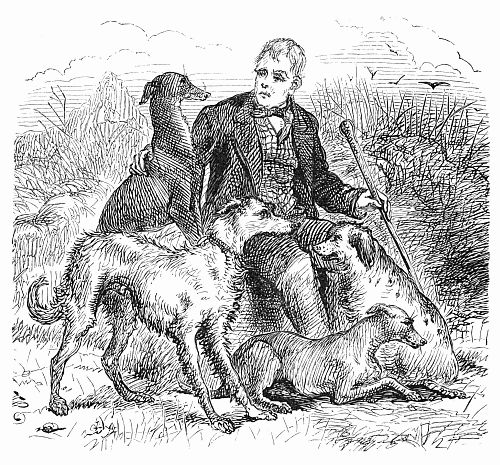 It was at Sandy Knowe, at the home of my father's father, that I had the first knowledge of life; and I recollected distinctly that my situation and appearance were a little whimsical. I was lame, and among the old remedies for lameness some one had recommended that, as often as a sheep was killed for the use of the family, I should be stripped and wrapped up in the warm skin as it was taken from the carcass of the animal. In this Tartar-like dress I well remember lying upon the floor of the little parlor of the farm-house,[287] while my grandfather, an old man with snowy hair, tried to make me crawl. And I remember a relation of ours, Colonel MacDougal, joining with him to excite and amuse me. I recollect his old military dress, his small cocked hat, deeply laced, embroidered scarlet waistcoat, light-colored coat, and milk-white locks, as he knelt on the ground before me, and dragged his watch along the carpet to make me follow it. This must have happened about my third year, for both the old men died soon after. My grandmother continued for some years to take charge of the farm, assisted by my uncle Thomas Scott. This was during the American war, and I remember being as anxious on my uncle's weekly visits (for we had no news at another time) to hear of the defeat of Washington, as if I had some personal cause for hating him. I got a strange prejudice in favor of the Stuart family from the songs and tales I heard about them. One or two of my own relations had been put to death after the battle of Culloden, and the husband of one of my aunts used to tell me that he was present at their execution. My grandmother used to tell me many a tale of Border chiefs, like Watt of Harden, Wight Willie of Aikwood, Jamie Telfer of the fair Dodhead. My kind aunt, Miss Janet Scott, whose memory will always be dear to me, used to read to me with great patience until I could repeat long passages by heart. I learned the old ballad of Hardyknute, to the great annoyance of our almost only visitor, Dr. Duncan, the worthy clergyman of the parish, who had no patience to have his sober chat disturbed by my shouting for this ditty. Methinks I see now his tall, emaciated figure, legs cased in clasped gambadoes, and his very long face, and hear him exclaim, "One might as well speak in the mouth of a cannon as where that child is!"