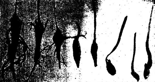 The "seng" digger often finds many roots close to the growing stalk, which had not sent up a shoot that year. For how many years the root may lie dormant is not known, nor is it known whether this is caused by lack of cultivation. I have noticed that the cultivated plant did not fail to sprout for five consecutive years. Whether it will fail the sixth year or the tenth is yet unknown. The seed of Ginseng does not sprout or germinate until the second year, when a slender stalk with two or three leaves puts in an appearance. Then as the stalk increases in size from year to year, it finally becomes quite a sizable shrub of one main stalk, from which branch three, four, or even more prongs; the three and four prongs being more common. A stalk of "seng" with eight well arranged prongs, four of which were vertically placed over four others, was found in this section (Southern Ohio) some years ago. This was quite an oddity in the general arrangement of the plant.