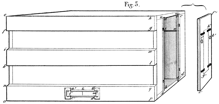 8 Op bl. 120 is een kastje beschreven, waarin men een zwerm drijven kan; hier vindt men hoe met een los plankje de zwerm uit de woning genomen kan worden. Men kan naar verkiezing het een of het ander gebruiken.
