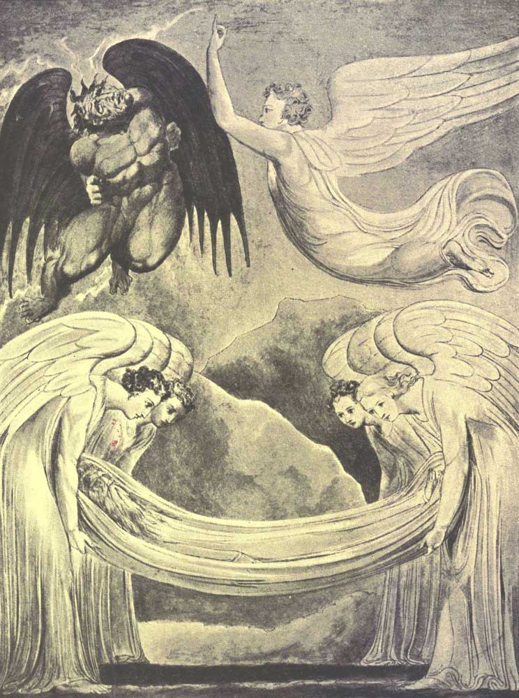 We who stand far apart from Blake’s day can see that this was the best thing that could have happened. Had his father been a rich man, able to pay a heavy premium that his son might be taught by one of the popular engravers of the day, we should have had the distressing picture of Blake moulded different and moulded wrong by a Woollett, a Bartolozzi, or an Angelica Kaufmann, and his whole soul in rebellious and ineffectual protest. As it was, Basire was master of the technical part of his craft, he believed in accurate, definite outline, and not being a man of genius, did not think it necessary that his pupils should turn out servile copies of himself. Blake learnt to handle his tools, to lay a good foundation, and technical proficiency. In after years, when engraving was to be a chief means of expressing his own original vision, he was saved from the painful necessity of having to unlearn much or all of his master’s teaching.