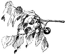 Almond is about as hardy as the peach, but it blooms so early in the spring that it is little grown east of the Pacific slope. It is an interesting ornamental tree, and its early bloom is a merit when the fruit is not desired. The Almonds commonly sold by nurserymen in the east are[5] hard-shell varieties, and the nuts are not good enough for commerce. The Almond fruit is a drupe, like the peach, but the flesh is thin and hard and the pit is the “Almond” of commerce. Culture the same as for peach.