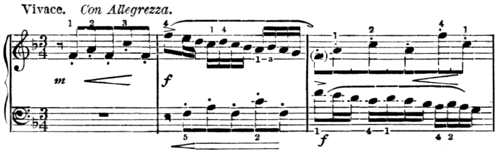 What a sonata is—How Beethoven enlarged the form—Illustrated in his Opus 2, No. 3, and in the “Moonlight Sonata”—The three Beethoven periods—In his last sonatas seems chafing under restraint of form—The sonata form reached its climax with Beethoven—Hampers modern composers—Lawrence Gilman on MacDowell’s “Keltic Sonata”—The first romantic composers—Weber—Schubert’s inexhaustible genius—Mendelssohn smooth, polished and harmless 100