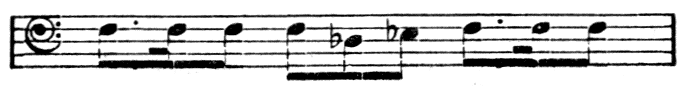 The Siegfried Motive is a good example of a musical phrase the contour of which practically remains unchanged through the music-drama. The varied emotions with which we listen to it are effected by association. 272 But many of Wagner’s leading motives are extremely plastic and undergo many changes in illustrating the development of character or the special bearing of certain dramatic situations upon those concerned in the action of the drama. As a gay-hearted youth, Siegfried winds his horn: