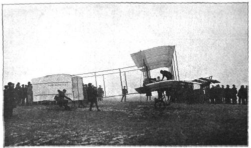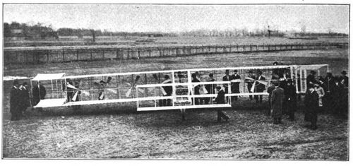 [B] Cette vitesse n'ayant jamais été renouvelée depuis par les biplans Wright. Il est à supposer que si elle fut atteinte, le 22 juillet 1909, à Fort-Myers, ce fut à la faveur d'un vent arrière exceptionnel.