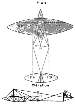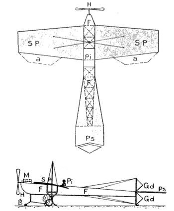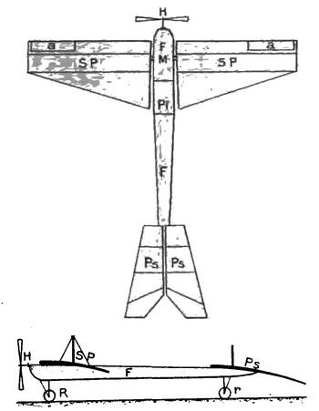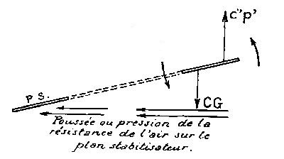 [20] Tout aéroplane est construit pour marcher avec un angle d'attaque déterminé par son constructeur; cet angle de marche normal est donc connu et le plan stabilisateur peut être orienté de façon à se trouver parfaitement horizontal quand l'aéroplane marche avec son angle d'attaque normal.