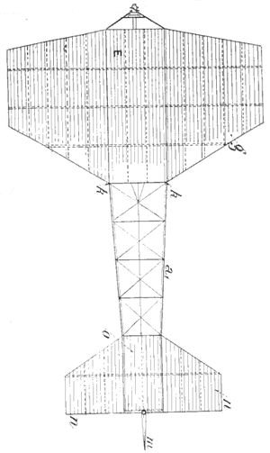 [32] Ce fuselage en bois de frêne et de peuplier pèse 20 kilogr. 500 et peut supporter en son milieu une charge de 300 kilos.