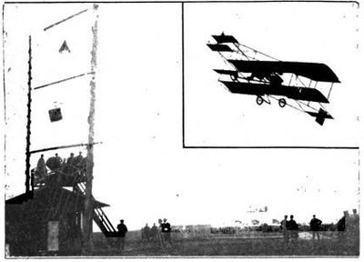 [22] La manœuvre d'ailerons adaptés même aux biplans et l'audace d'inclinaisons excessives permettent aujourd'hui à quelques aviateurs des virages très courts; mais ce sont prouesses presque acrobatiques très imprudentes.