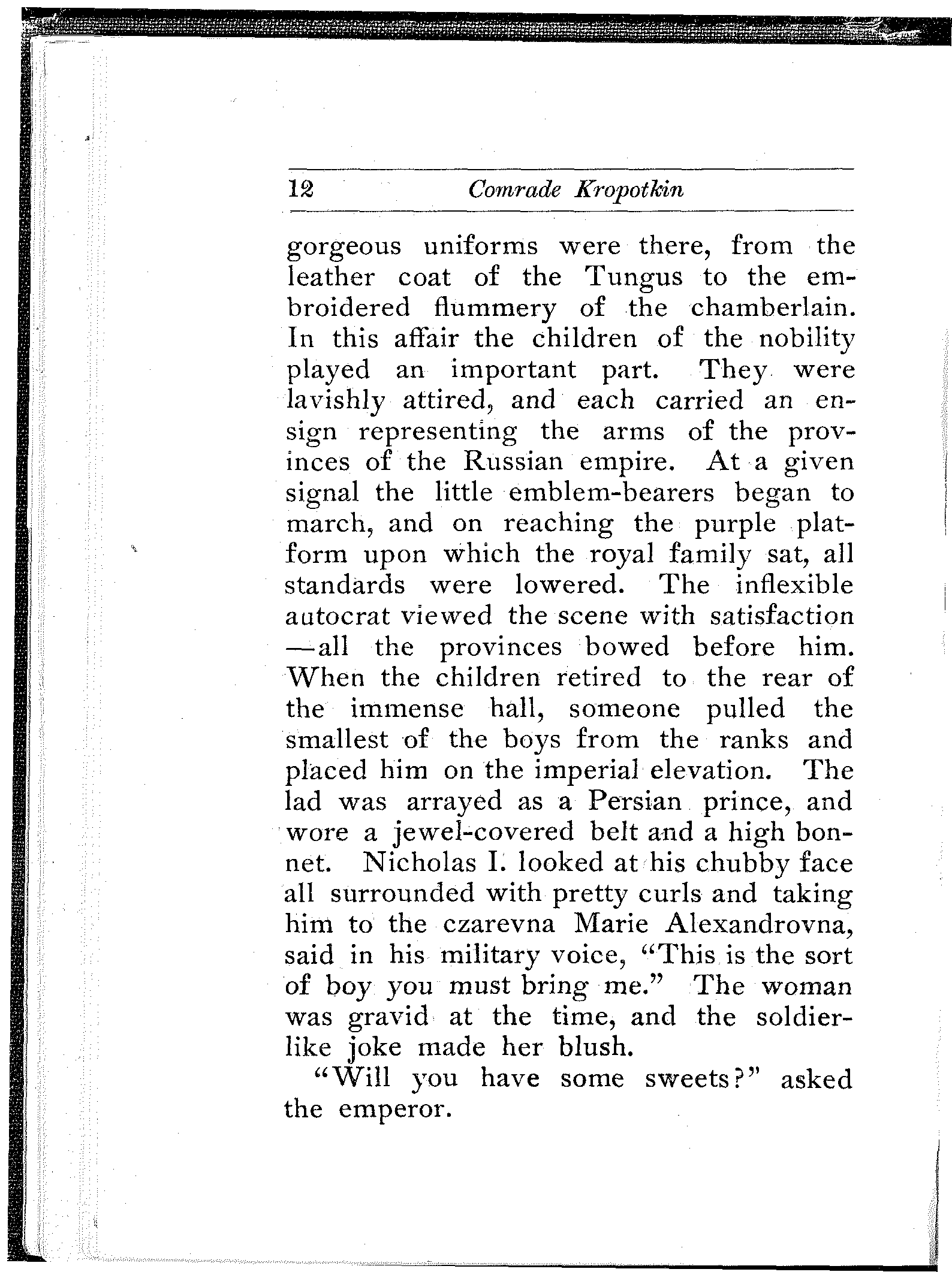 So thoroly was liberalism crushed, so completely was absolutism supreme, that 'Nikolaus Palkin' walked the streets of bleeding Russia unattended and unafraid.