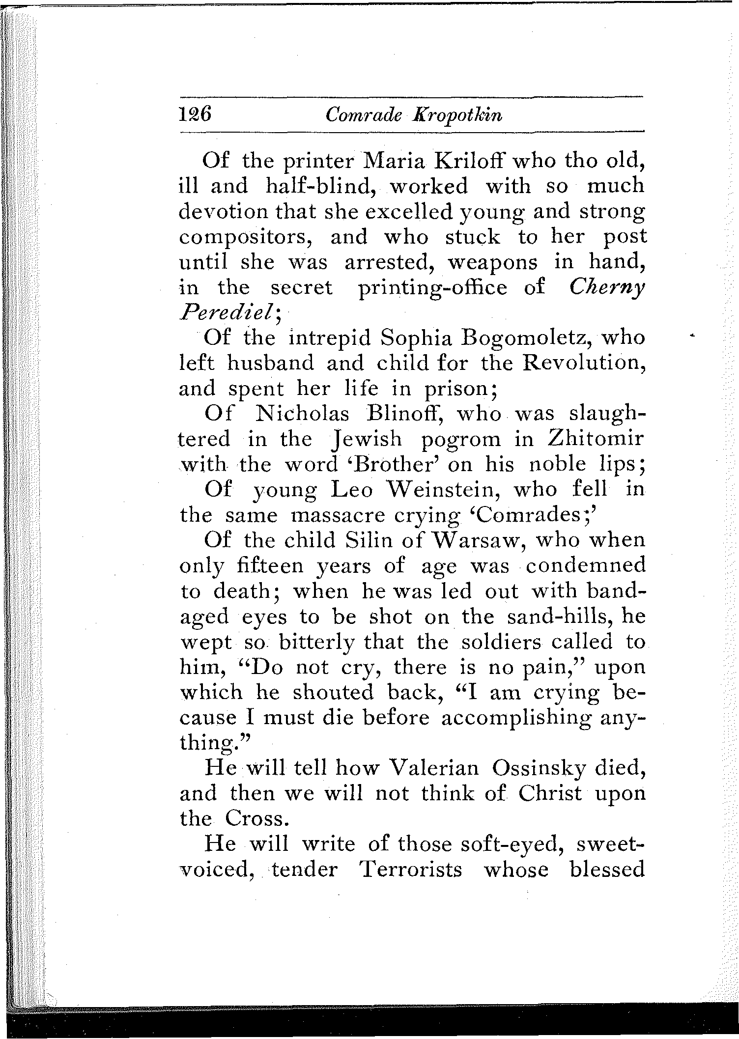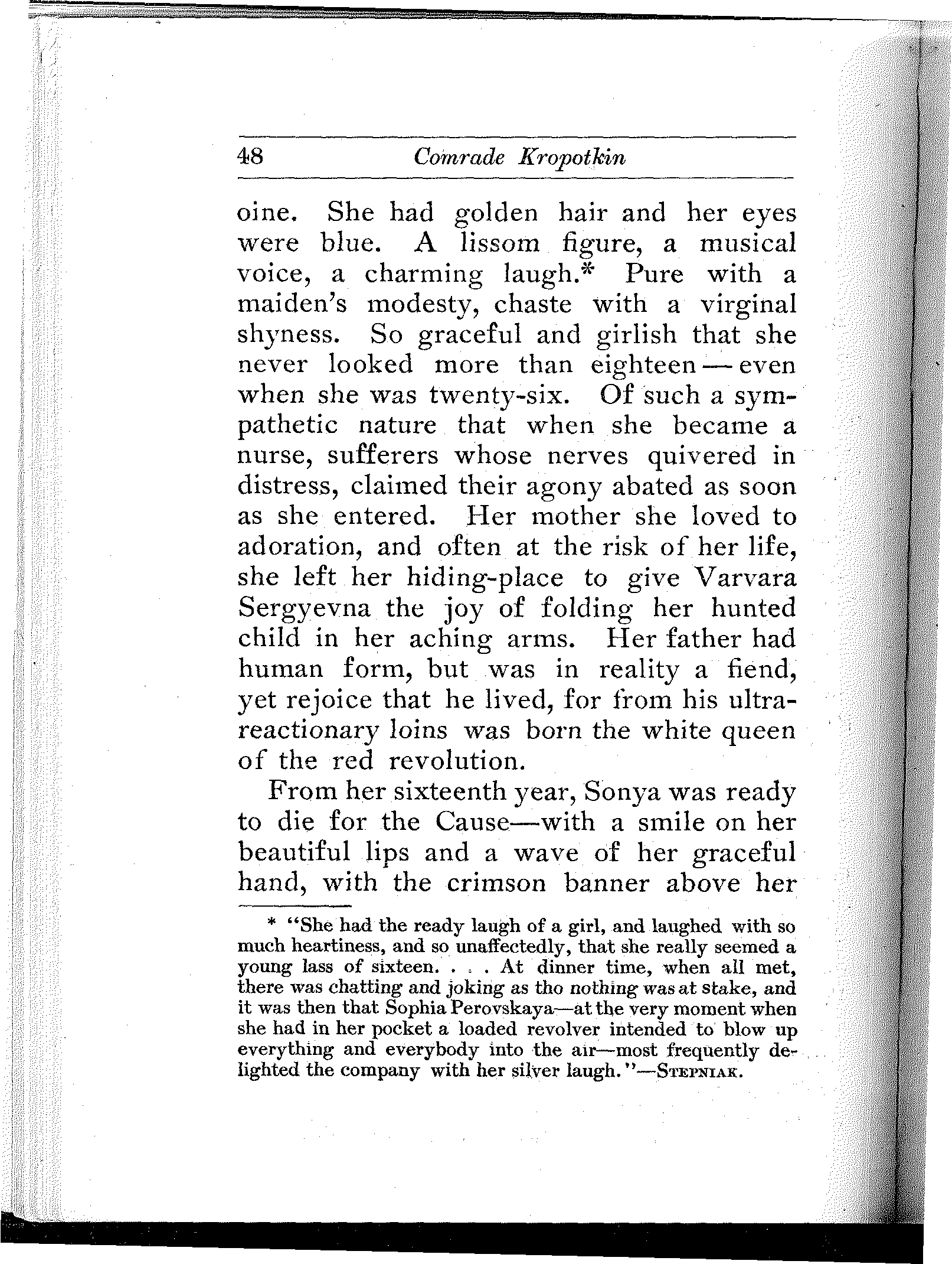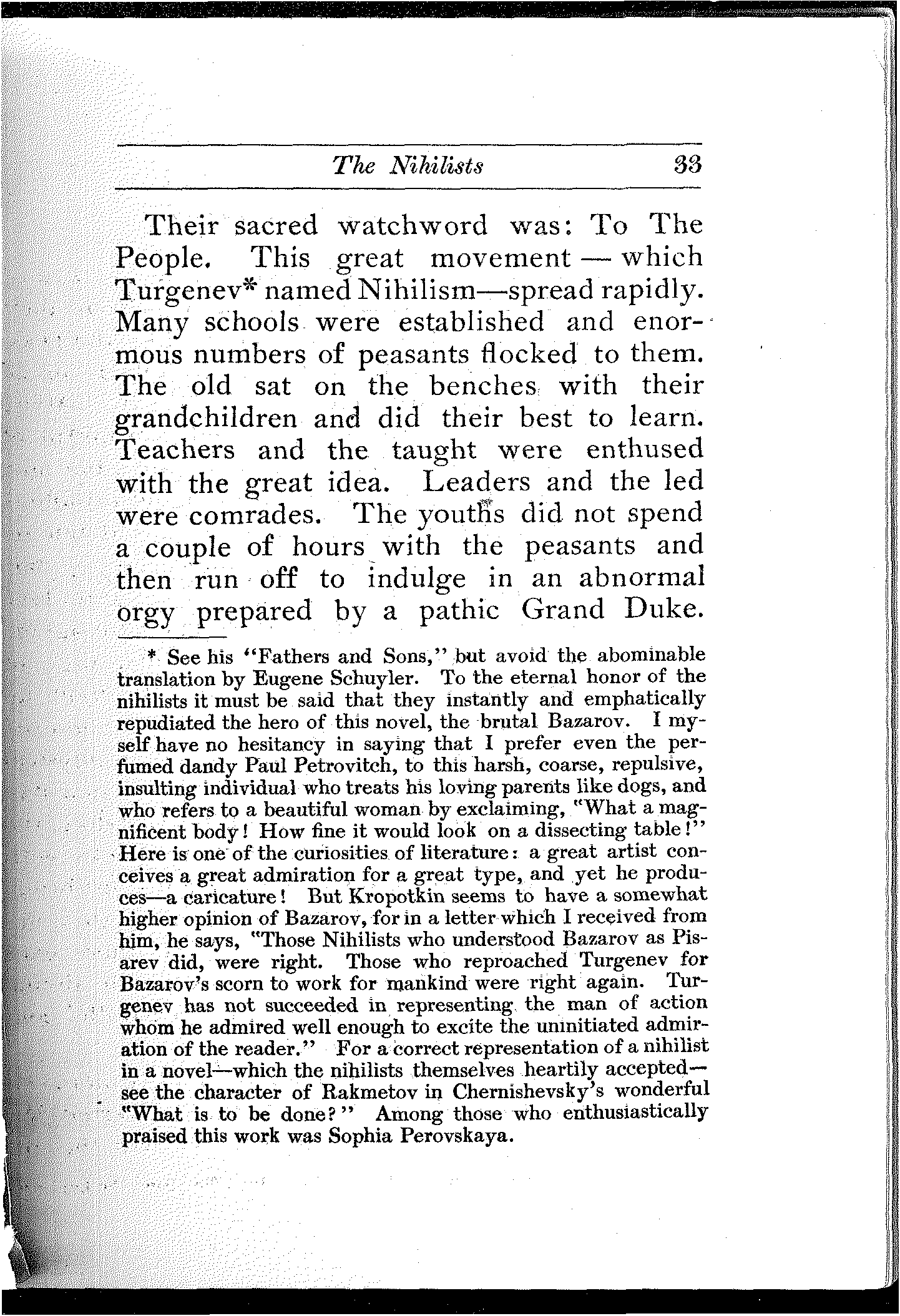 A wonderful and terrible thing is happening in the largest empire on earth; a downtrodden people is engaged in a death-grapple with its merciless rulers; and never were masters so inhuman, and never were people so heroic. In comparison with this titanic struggle the French Revolution itself sinks into insignificance. But what do we know about it? And what do we care? Russia is far away.... Once in a while the report of a particularly atrocious massacre, or a particularly cruel torture inflicted upon a young girl revolutionist will shock our sensibilities, will cause a pang in our hearts, will perhaps make our hair stand on end,—but in a day or two we forget all about it. We are so busy!
