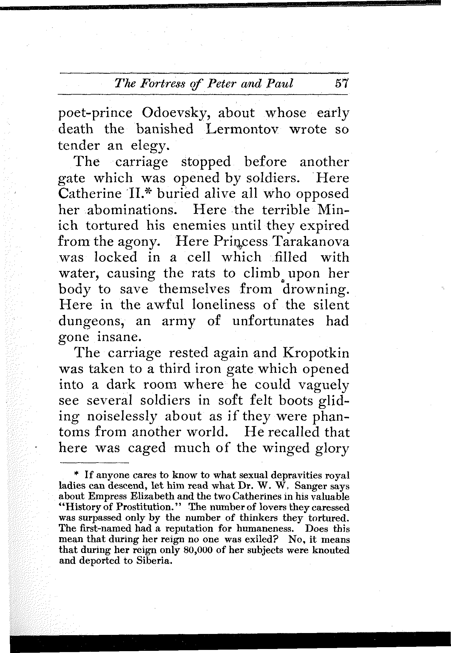 This essay was written at the age of twenty, and the youth of the author will serve as an apology, if apology be needed, for the sharpness of some of the expressions found in these pages. But is excuse really necessary? I hardly think so. No language can be[6] too strong when condemning the Russian Bureaucracy, no judgment can be too severe when pronounced on czardom and its cruel minions. In fact the English language sometimes seems inadequate....
