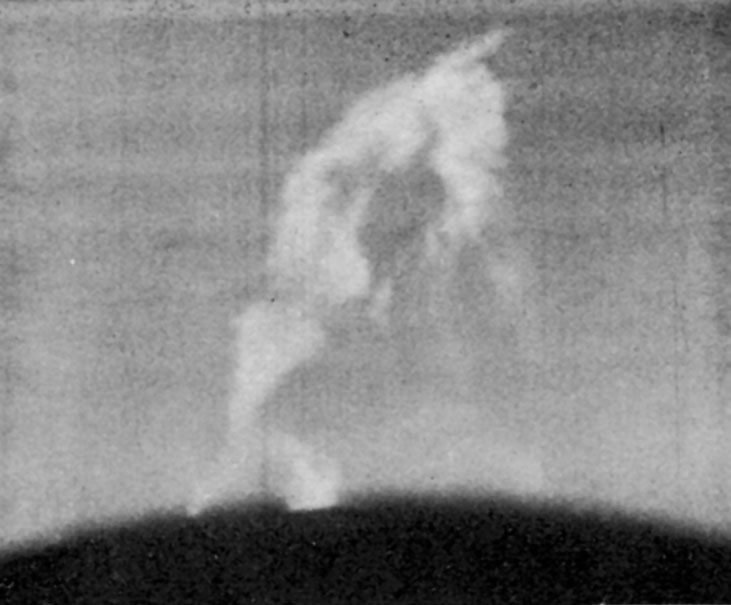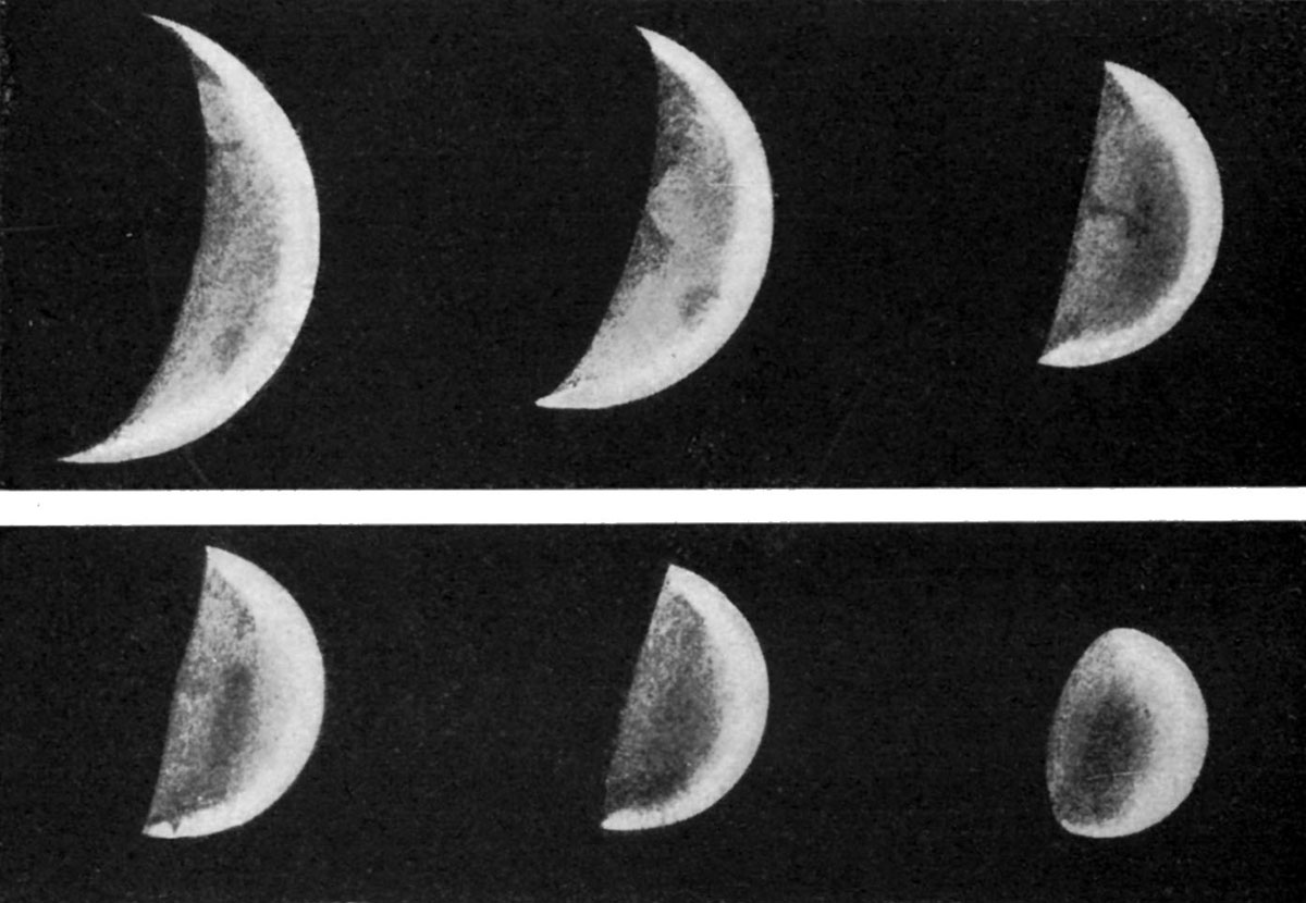 241. The moon's development.—The fine series of photographs of the moon obtained within the last few years at Paris, have been used by the astronomers of that observatory for a minute study of the lunar formations, much as geologists study the surface of the earth to determine something about the manner in which it was formed. Their conclusions are, in general, that at some past time the moon[Pg 374] was a hot and fluid body which, as it cooled and condensed, formed a solid crust whose further shrinkage compressed the liquid nucleus and led to a long series of fractures in the crust and outbursts of liquid matter, whose latest and feeblest stages produced the lunar craters, while traces of the earlier ones, connected with a general settling of the crust, although nearly obliterated, are still preserved in certain large but vague features of the lunar topography, such as the distribution of the seas, etc. They find also in certain markings of the surface what they consider convincing evidence of the existence in past times of a lunar atmosphere. But this seems doubtful, since the force of gravity at the moon's surface is so small that an atmosphere similar to that of the earth, even though placed upon the moon, could not permanently endure, but would be lost by the gradual escape of its molecules into the surrounding space.