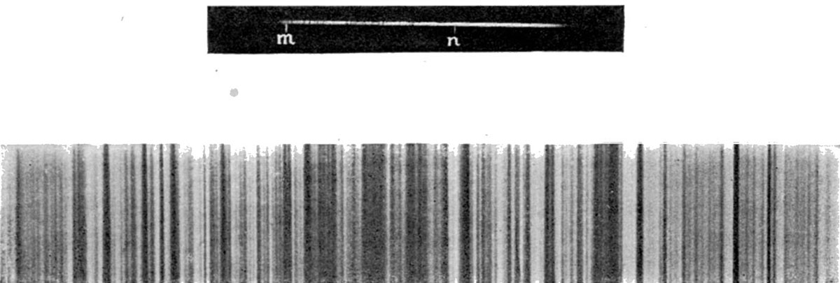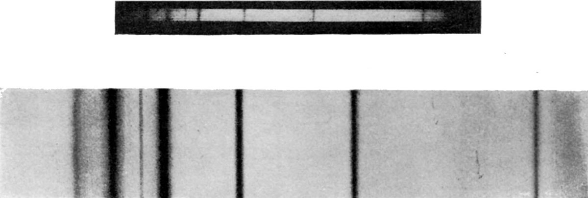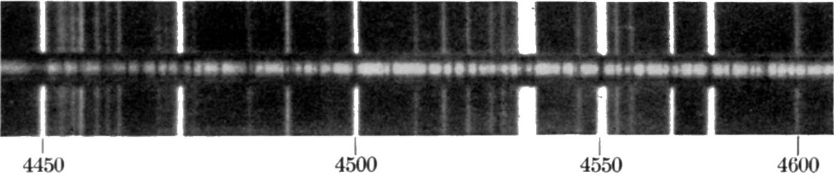 While human life, or even the duration of the human race, is too short to permit a single star to be followed through all the stages of its career, an adequate picture of that development might be obtained by examining many stars, each at a different stage of progress, and, following[Pg 377] this idea, numerous subdivisions of the types of stellar spectra shown in Fig. 151 have been proposed in order to represent with more detail the process of stellar growth and decay; but for the most part these subdivisions and their interpretation are accepted by astronomers with much reserve.