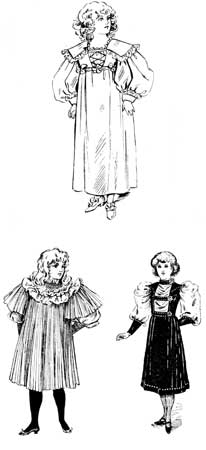 The æsthetic movement has also had a marked influence on our taste in all directions, but more especially in the costume of the last few years; and though the picturesque garb of the worshippers of the sunflower and the lily may not be adapted to the wear and tear of this workaday world, it is beautiful in form and design, incapable of undue pressure; and for children and young girls it would be difficult to imagine a more charming, artistic, and becoming costume.