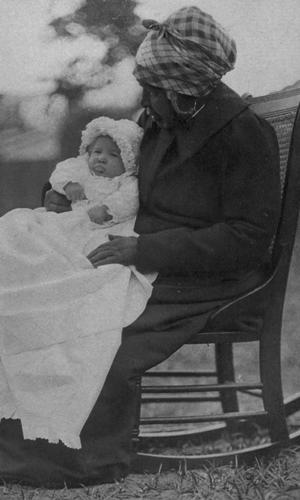 AN OLD BLACK “MAMMY” WITH WHITE CHILD
