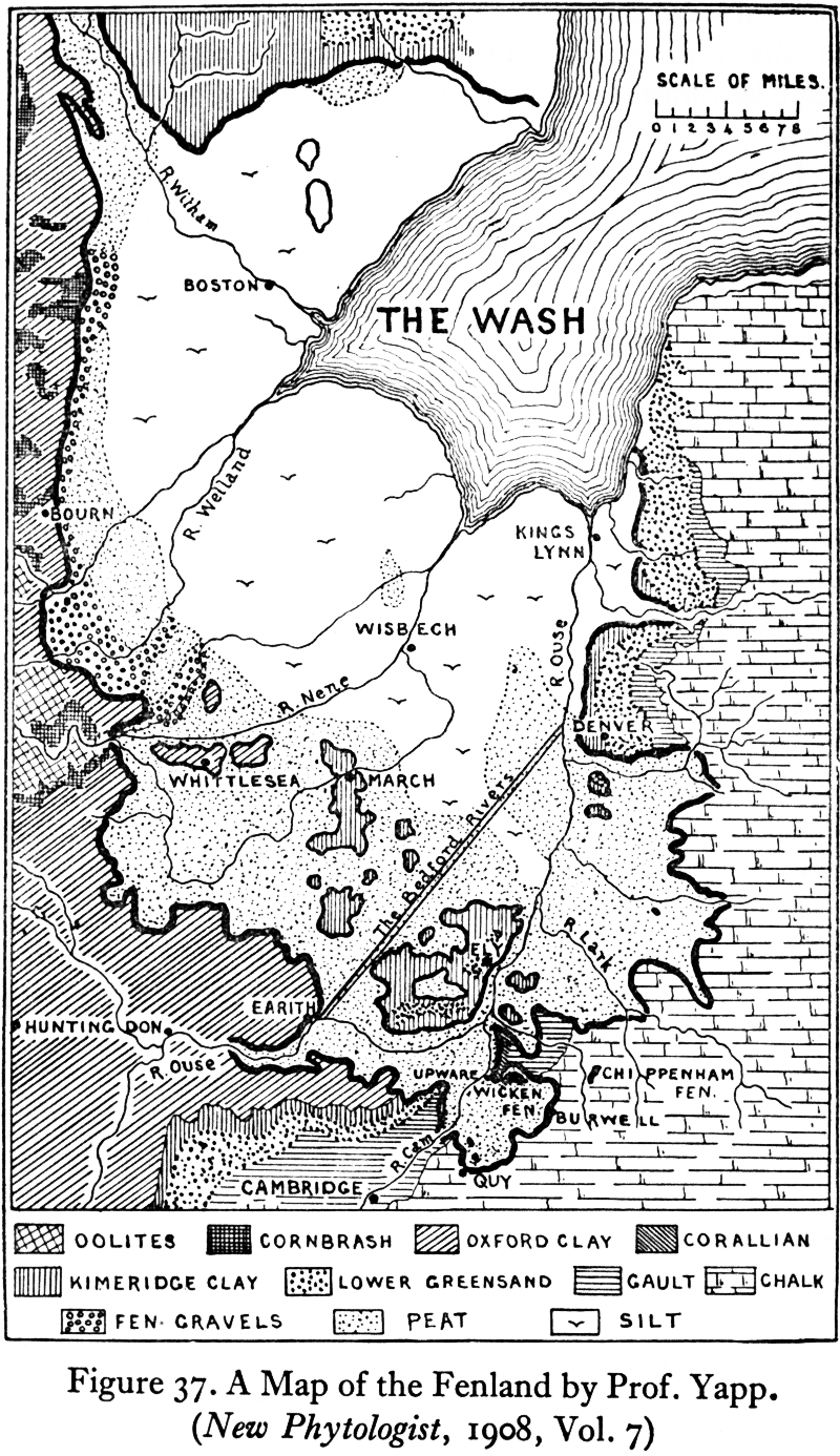 If geological strata are to be represented, the accepted symbols should be used; if the map is intended to represent the distribution of soils, convenient signs may be employed, e.g., large dots for shingle or gravels, small dots for sand, black areas for clay, and so on; finally, if the distribution of plants or of animals is to be shewn, symbols again may be employed. These, however, must be quite simple and as far as possible give an idea of the organism represented. This, in the case of animals, may be a difficulty, but, with regard to plants, simple signs are easily inserted which give a very good idea of the plant it is intended to represent. Many of the signs used by the Ordnance Survey are ready to hand, and these can often be used to designate plant associations.