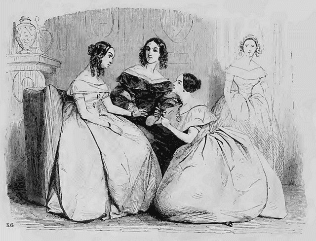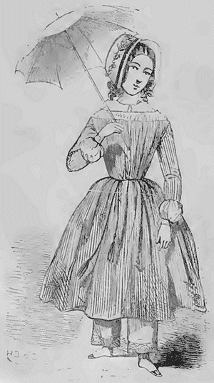 Comme mode nouvelle, les robes sont encore assez pauvres. Sinon les amazones à revers et les redingotes à la vieille, tout ce qui parait n'est qu'un essai incertain; et malgré l'impatience des innovateurs, nous sommes forcé de dire que la plupart des robes de ville se feront très-certainement à jupes unies.