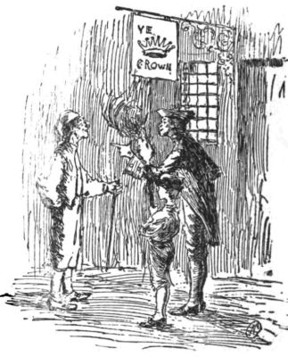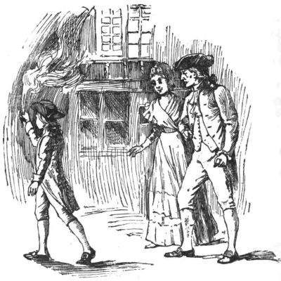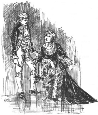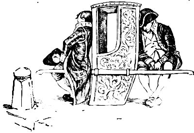 Just as the third hour of the afternoon had sounded from the belfry of Saint Martin's-in-the-Fields, a hackney coach drew up before the most pretentious mansion upon the west side of Leicester Fields; and while the coachman hastened to agitate the heavy door-knocker, a young woman, almost a child, sprang out upon the pavement without waiting to have the shaky steps unfolded and lowered for her convenience. Her dust-colored mantle, disarranged by her rapid movements, revealed a rich costume beneath; while the dazzled passer-by might have caught a glimpse, amidst the whiteness of the elevated skirts, of a tiny pair of red satin slippers and two slender, exquisitely moulded ankles finely clad in silken hose with embroidered clocks.