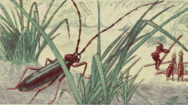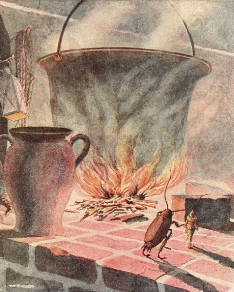 Nowhere was there a sign of the former life, or its delightful charm. They sadly returned to their home, wet and cold, where the Wood-bug awaited them. When he finally espied them, he shuffled about on his six feet, nodded with his whiskers and aired his wing shells, until he found courage to speak.