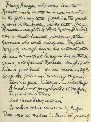 Franz Hueffer who came into the Rossetti circle in the manner indicated