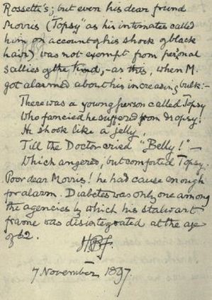 There was no malice in these rhymes of Rossetti's; but even his dear