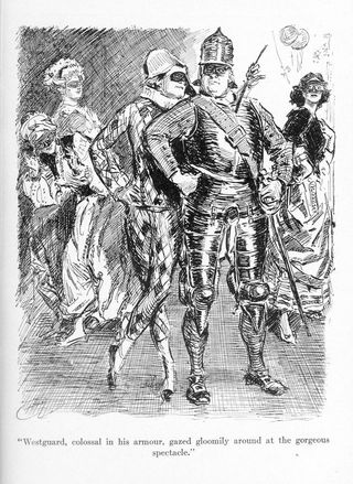 | "Westguard, colossal in his armour, gazed gloomily around at the gorgeous spectacle" | 24-25 |