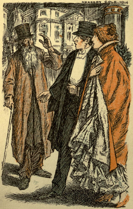 'Oh, he may say so in that book,' said Mrs. Montagu Samuels, an amiable, loose-thinking lady of florid complexion, who dabbled exasperatingly in her husband's philanthropic concerns from a vague idea that the wife [7]of a committee-man is a committee-woman. 'But he knows better.'