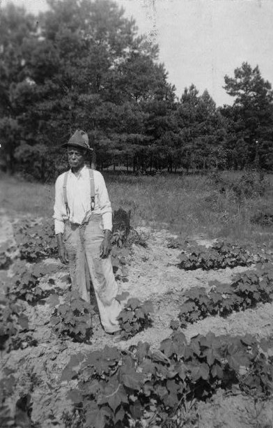 "I never hears dat any cullud folks gits de land offen dere massa. I heared some old cullud folks say dey told it to be sich. Sho', de igno'mus fools think de gov'ment gwine take land from de massas and give it to dem! Massa Patrick tell us all 'bout sich. Like niggers votin'. I's been asked to vote but I knows it wasn't for de good. What does I know 'bout votin'? So I follows massa's 'structions and stays 'way from sich. If de cullud folks can do de readin' and knows what dey do, maybe it all right for dem to vote. De way 'twas after surrender, 'twas foolishment for niggers to try votin' and run de gov'ment. I wants to go some other place iffen dey do. De young'uns now gittin' edumacated and iffen dey larn de right way, den dey have right to vote. I Jus' farms and makes de livin' for my family. My first wife dies in 1896 and I marries in 1907 to Elsie Johnson. She here with me.