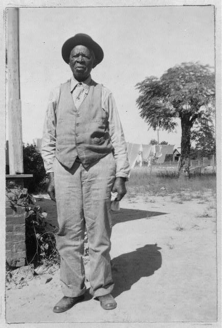 Uncle Cinto Lewis, ex-slave, claims to be 111 years old. He lived in a brick cabin with his wife, Aunt Lucy, on the Huntington Plantation, in Brazoria Co., Texas. Miss Kate Huntington says the cabin occupied by the old couple is part of the old slave quarters built by J. Greenville McNeel, who owned the plantation before Marion Huntington. Miss Kate's father bought it. Although Uncle Cinto claims to be 111, he says he was named San Jacinto because he was born during the "San Jacinto War", which would make his age 101.
