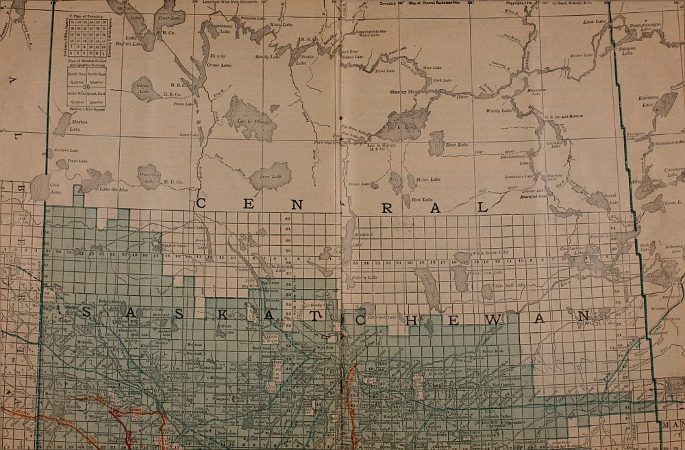 All public lands in Manitoba, Saskatchewan, and Alberta are controlled and administered by the Dominion Government through the Department of the Interior. The lands disposed of as free homesteads (Government grants) under certain conditions involving residence and improvements, are surveyed into square blocks, six miles long by six miles wide, called townships. When these improvements are completed and duties performed, a patent or crown deed is issued.