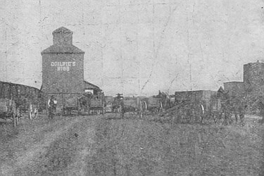"One thing we highly appreciated was a small tank we had made to carry water in the cars for the horses. It was made to hold two barrels, was about three feet in diameter and four high, and had the top soldered on, with a lid just large enough to get in a pail. This was the best arrangement on the train for hauling water. After we landed we had to haul water for our house use and the tank was very useful to draw up a couple of barrels and have a big supply on hand and no slopping when hauling."