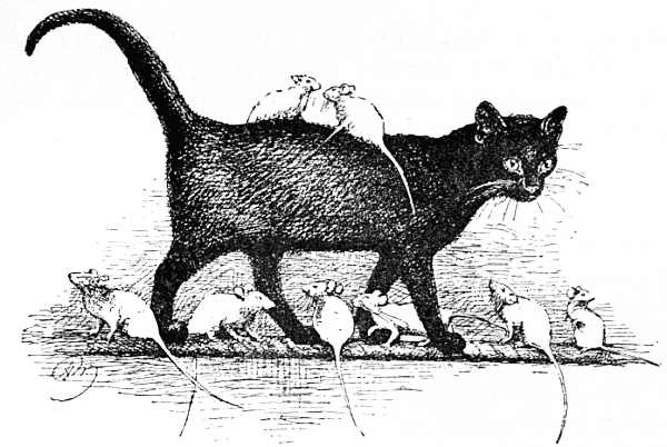 Apropos with the above, as applying the bodies of the mummy Cats for manure, comes the modern idea of keeping Cats for their fur. It is stated that a company has been formed in America for that purpose in Washington, and an island of some size has been bought or leased for the purpose. The intention is to raise entirely black Cats; and as their place of abode will be surrounded by water, it is conjectured that after the first importation they will go on propagating and producing only Cats of that beautiful though sombre dark hue. The Cats with which the island is to be stocked are to be procured from Holland, where already the "industry" is "at work." So much so that a friend of mine, an elderly gentleman, sending to a furrier in Holland to know what kind of fur he would recommend as the best for warmth, received the reply that Cats' skins "were the most useful and warmest." A few days ago he called on me wrapped in a cloth coat, with fur collar and cuffs, and lining throughout of black Cats' skins, and I am bound to say that the general appearance was much in its favour; he also stated that he was in every way perfectly satisfied.