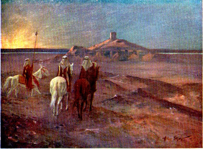While thus engaged, I received the first news of the wanderers, contained in a long letter from my father. It was written at Hillah, and finished as the camp was being struck at the Birs Nimroud. Edwards and I read it with intense interest, and both of us blushed when we came to passages dealing with the good names which we had left behind us; for many were the nice things that my father told me he had heard, not only from the Aeniza, but also from the Turkish officials at Hillah. There he had met the cheery old Commandant, who had recently returned from reinstating Ali Khan at Adiba. In the eyes of Ali Khan and his people, we were, the Commandant affirmed, the greatest heroes that Arabia had yet known, and if ever we revisited Adiba, our welcome would be magnificent. At the Birs Nimroud, Faris, Sedjur, two hundred horsemen, and many camels were found waiting, and immediately on his arrival, my uncle presented the sheik, in the presence of his men, with the shoe of Shahzadi, the Aeniza displaying extraordinary enthusiasm on the occasion. "We are just off," concluded my father, "and Sheik Faris is capering around on little Kushki, with the prized shoe dangling from her neck—the two of them as proud as peacocks."