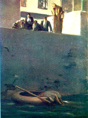 We all looked over the edge of the embankment, and we could see below us, in the dim light, a kufa, with the figure of a man lying across the gunwale, the head and shoulders at the bottom of the boat, and the legs trailing in the water over the side.