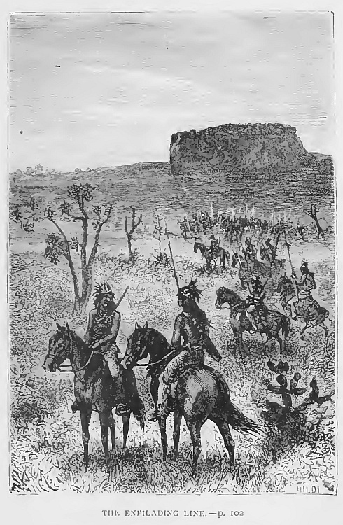 Quick as thought every warrior is upon his horse, gun or spear in hand; they, too, in military formation—line of battle—pressing forward to the encounter, the sentries alone left on post.