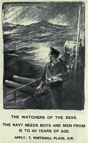 The Watchers of the Seas. Recruiting poster for the British Navy, 1915.