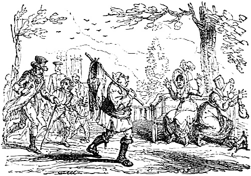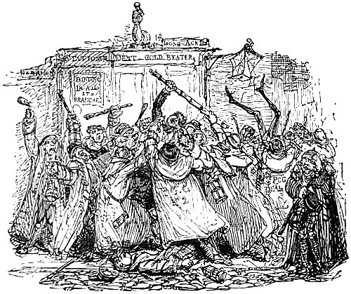 "Please your worship," said one of the watchmen—seemingly quite surprised at finding he had had so much trouble with a tailor—"please your worship, as we were taking him to the watch-house, he took up his fist and knocked me down like a bullock!"