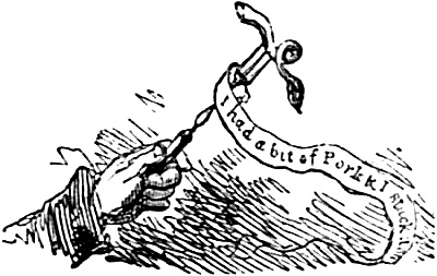 Ephraim Ephraim deposed, that he was by profession an orange merchant, carrying on his business in Covent-garden Market; that the defendant, Richard Stewart, was a dealer in pork and poultry in the said Market; and that he, the said Richard Stewart, on the day and hour above stated, did thrust a "pig's face" against his cheek with such violence, as to throw him backwards into a chest of oranges, whereby he sustained great damage both in mind, body, and merchandise. Plaintiff stated, moreover, that he had previously, and on sundry occasions, forewarned the said Richard that it was contrary to the tenets of his religion to come in contact with pork; and yet, nevertheless, the said Richard did frequently, and from time to time, obtrude pork upon his attention, by holding it up aloft in the market, and calling to him—"Ephraim! will you have a mouthful?" All this, he humbly submitted, betokened great malice and wickedness in the said Richard, and he therefore[Pg 290] besought the magistrate to interpose the protection of the law in his behalf.