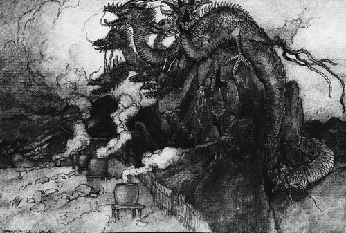 And when he asked her this, she unclasped her girdle, which was fashioned after the form of a golden scaled dragon with translucent eyes. And she took the girdle and wound it nine times about her love’s arm, and she said, “O love, we part: these are the years until we meet again.” So she touched the golden circles on his arm.