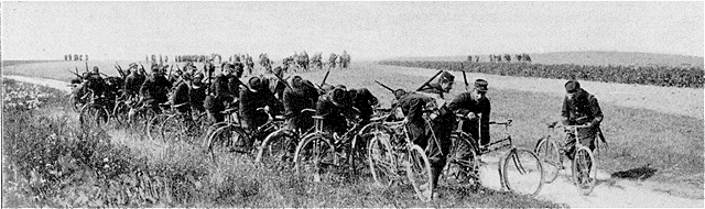 Un peu plus tard, deux détachements de cyclistes arrêtaient, en tête et en flanc, aidés par du canon, un régiment d'artillerie ennemie. Puis le bataillon au complet, lancé en avant, prenait contact avec quelques troupes de chasseurs à pied, à Pogny.