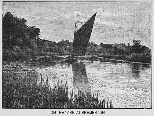 A good way of seeing the rivers, if you have no boat, is to give a wherryman a small sum to take you with him when he makes a passage. There are always numbers of wherries leaving Norwich and Yarmouth, and if you hail the one you fancy, you will be readily taken on board. Thus you might sail from Norwich to Yarmouth one day, up to Wroxham the next, back to Yarmouth and up to Beccles, at an expenditure of half-a-crown a day and refreshments. I am sure that visitors to either Yarmouth or Lowestoft will do well to avail themselves of this suggestion.