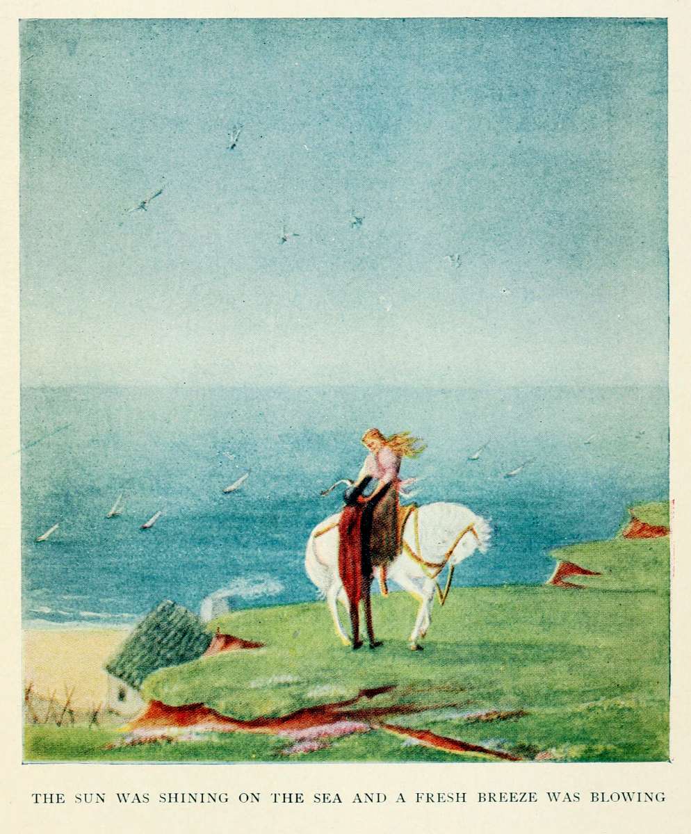 This convinced the King that Blue Eyes was a Prince in disguise, and the conditions were readily agreed to, and Rainbow and Blue Eyes were married without further delay. The King gave them each a white pony for a wedding present and they started off on their travels.