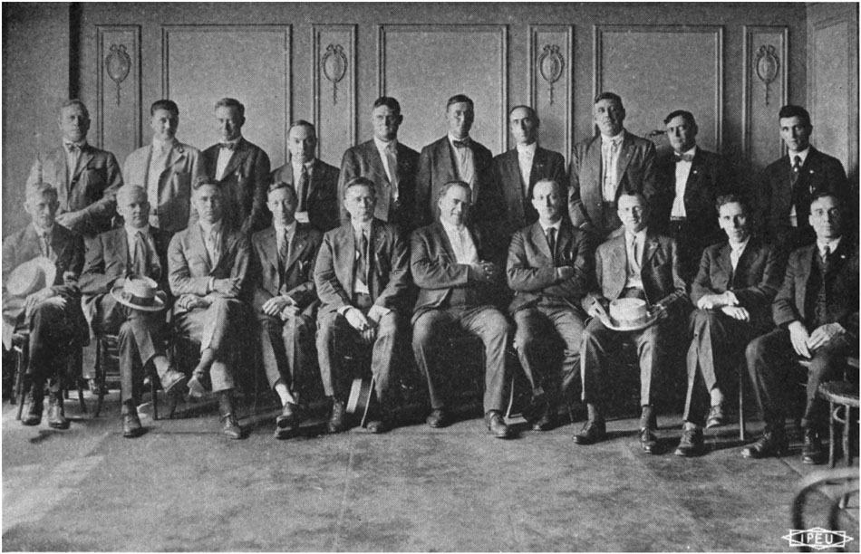 Standing, left to right: W. Searl, F. Wilson, A. V. Craig, M. Mestrovich, E. Martin, J. M. Peters, R. W. Beattie, J. Moskus, S. Coates, J. Manley, Striker, T. A. Harris, E. O. Gunther, B. J. Damich, Striker, C. Foley, M. Bellam, T. A. Daley, Striker, W. Z. Foster. Seated, left to right: J. Lenahan, F. J. Sweek, J. Klinsky, F. Wiernicki, I. Liberti, A. DeVerneuil, C. Claherty, J. N. Aten, J. W. Hendricks, S. Rokosz, R. W. Reilly, J. A. Norrington, F. Kurowsky, J. G. Brown, G. W. Troutman, J. E. McCadden, W. Murphy, S. T. Hammersmark.
