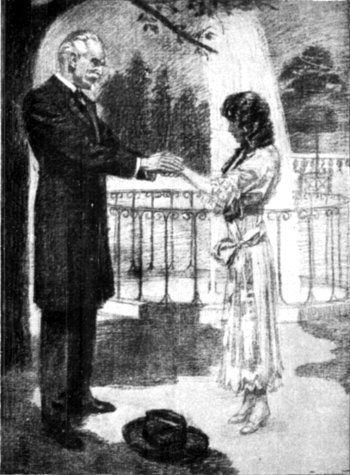 Together, transfixed and agape, they stared. A startling sight stood in front of their eyes—a spectacle that filled the sensitive girl with a panting, sickening horror. She stood all a-quiver, her two little hands clutching her breast and her violet eyes swimming in terror. For a tense long minute they could neither speak nor move.