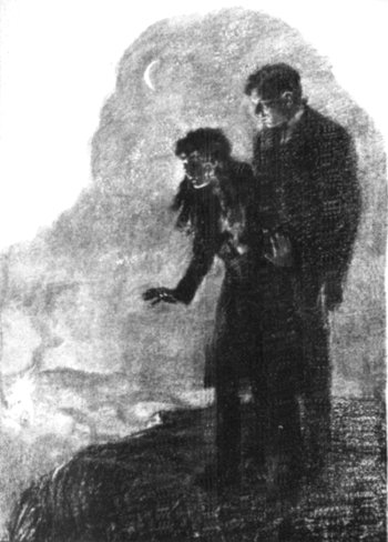 Enraptured, she looked and saw Lem on the brink of the cliff, seemingly so near that she instinctively stretched out a hand to attract him. As she looked she saw him stretch his two arms outward and upward, and she understood their pantomimic plea.