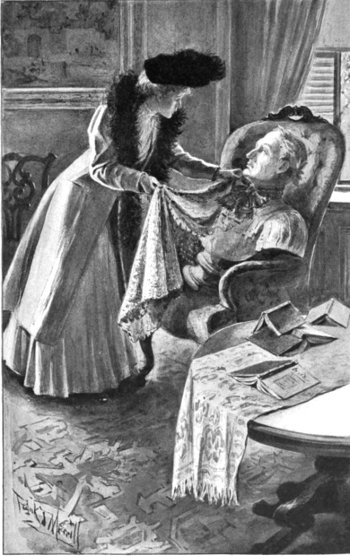 "Why, are you in?" she said innocently, as she entered the room. "I didn't know but what it might be a burglar or something—" She looked from one to the other anxiously, and then catching sight of the overturned table, began to busy herself picking up the scattered ornaments.